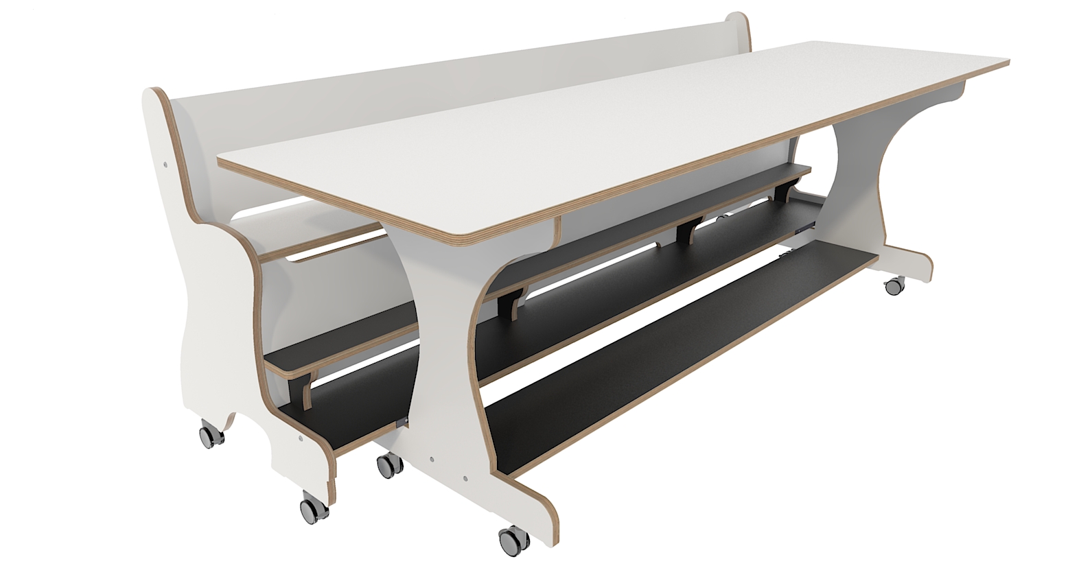 Hoogzit tafel L220 x B64 cm Wit met bank Tangara Groothandel voor de Kinderopvang Kinderdagverblijfinrichting