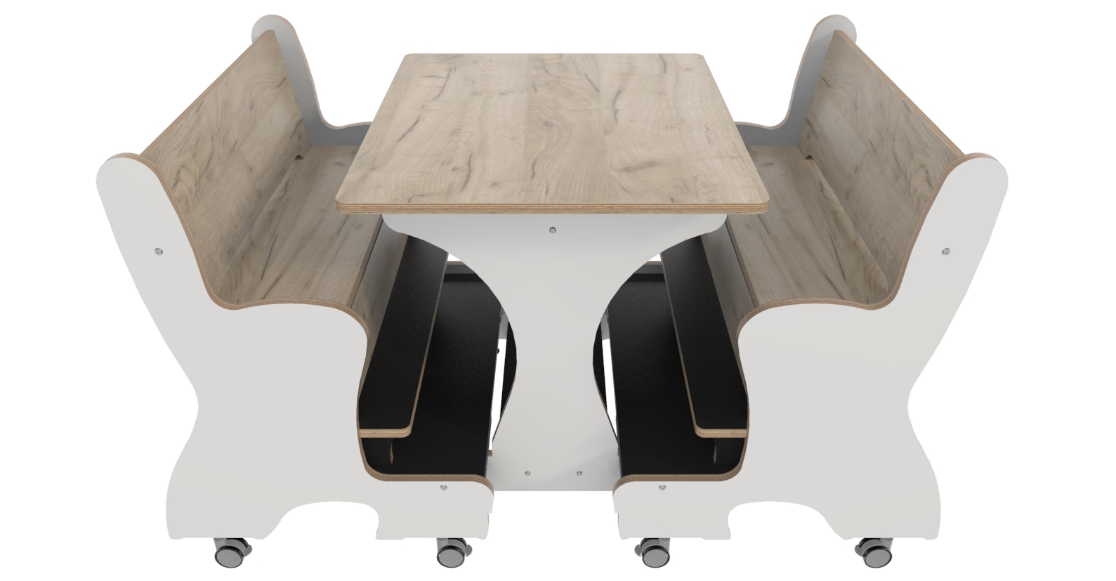 Hoogzit tafel L75 x B80 cm wit met grey craft oak en 2 banken Tangara Groothandel voor de Kinderopvang Kinderdagverblijfinrichting