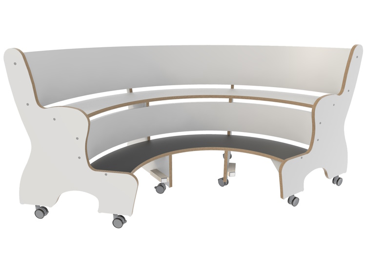 De halfronde bank sluit perfect aan op de kopse kant van de J-tafels.