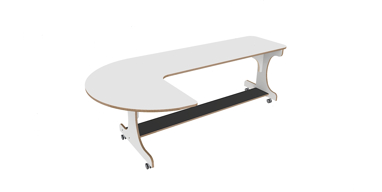 Multifunctionele hoogzittafel in J-vorm.