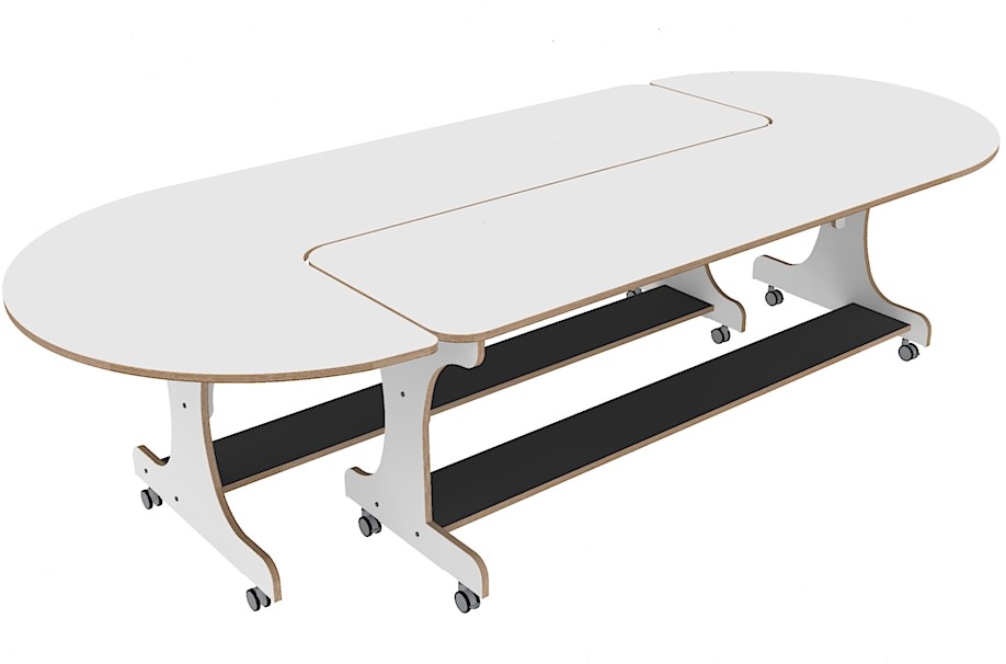 Wanneer 2 J-tafels gecombineerd worden ontstaat er een ovalen vorm,