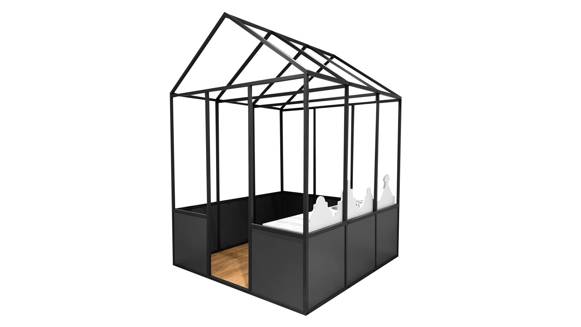 In het huisje kan een zithoek, bouwhoek en oer hollandse keuken worden verwerkt.
