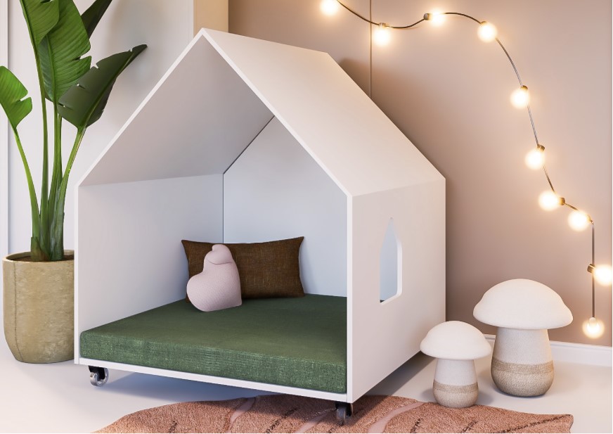 In het huisje ligt een kunstleder kussen in een kleur naar keuze.