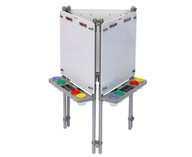 | schilders ezel 3 zijdig Hier ontstaan kunstwerken hoogte verstelbaar met verfbekers inclusief montage-instructies In hoogte verstelbare schildermuur voor uw faciliteit Wie wordt de nieuwe Picasso? Drie tot zes kinderen kunnen tegelijkertijd hun ideeën op papier zetten op de 116 cm hoge schilderijmuur. Ze kunnen ideeën uitwisselen en van elkaar leren. Elk kind werkt op zijn eigen schilderijoppervlak van 60,5x60,5 cm, dat is voorzien van vier verfpotten en een penseelsteun . Dit is afneembaar en kan in de vaatwasser worden gereinigd. De hoogte van elk schilderijoppervlak kan individueel worden aangepast aan de grootte van elk kind . Gebruik de verfmuur met de volgende eigenschappen: - Verfmuren zijn magnetischen kan worden geverfd met whiteboardmarkeringen en weer worden afgeveegd - elke verfmuur heeft twee clips om op papier te houden. - Onder elk verfoppervlak bevindt zich een verwijderbaar inzetstuk voor vier verfbekers en opbergruimte voor penselen, pennen, etc. Afmetingen (L x B x H): 58 x 8,5 x 7,5 cm - Totaal metalen frame: 116 cm hoog - Afmetingen het verfoppervlak: 60,5 x 60,5 cm - het complete verfbord is in hoogte verstelbaar - inclusief water- en veiligheidskleurbekers; vier stuks per oppervlak - eenvoudig schroefmechanisme om de hoogte aan te passen en een verlenging te maken - naar wens uit te breiden - met montage-instructies Details: - Frame: aluminium - Panelen: MDF, gecoat en rubberen randen - Kleine onderdelen: polypropyleen (PP) levering - 3-zijdige schildermuur, incl. 12 verfbekers; Afmetingen: 116 x 67 x 58 cm Gegevens & feiten te gebruiken: Leeftijd vanaf:2 jaar textuur: Primair materiaal:plasticAndere materialen:metaal Afmetingen / gewicht: diepte:58 cmbreedte:67 cmheight:116 cm Algemene info: Product kleur:Wit, zilver, metaalachtig |