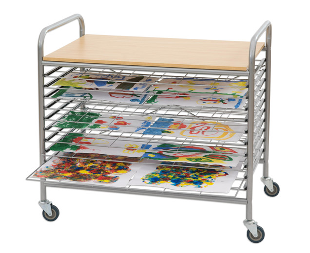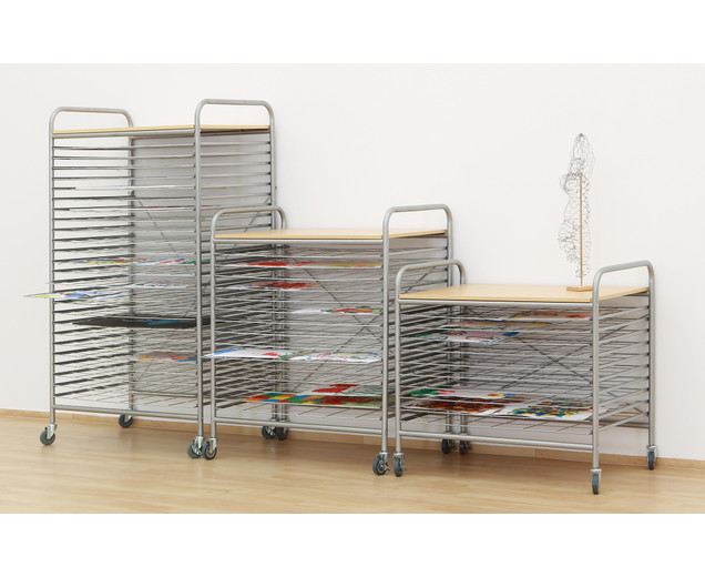Op de droogwagen kunnen veel natte foto's drogen zonder te rennen of naar beneden te glijden. De droogwagen is uitgerust met 10 bovenop elkaar geplaatste droogladen , die gemakkelijk kunnen worden in- en geduwd met geleiderails aan de zijkanten . De afzonderlijke rasters bieden ruimte voor foto's tot het formaat DIN A1. Hiermee kan de auto tot 40 A4-afbeeldingen tegelijkertijd drogen.