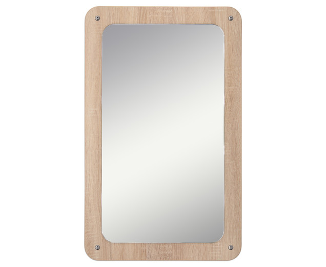 De spiegel is gemaakt van veiligheidsglas, dat aan een stabiele spaanplaat is bevestigd.
