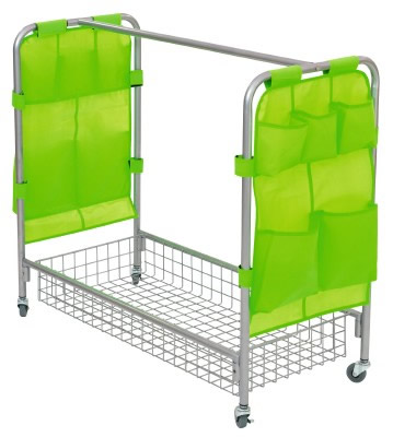 Mobiel verkleedmeubel metkledingroede en aan de zijkanten verschillende opbergvakjes.