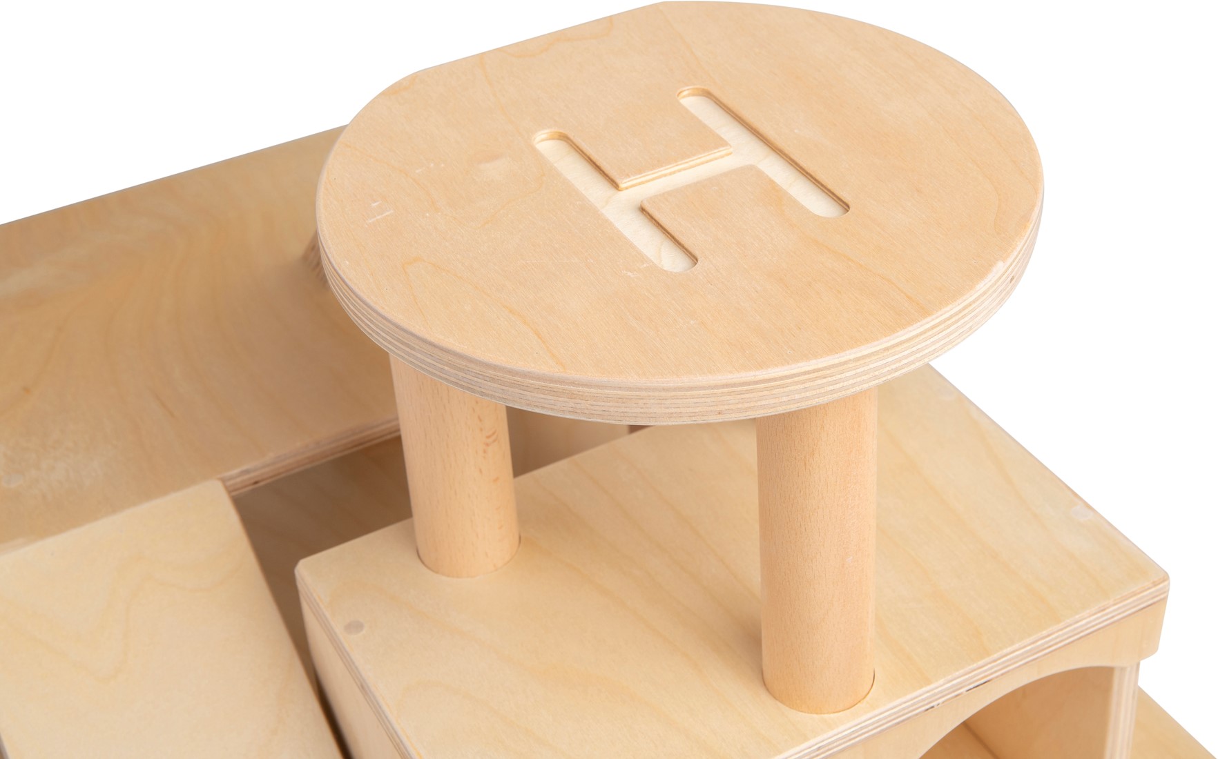 Het heeft 2 brede oprijbanen, waarop de auto's van de allerkleinste kinderen makkelijk op en af gereden kunnen worden.
