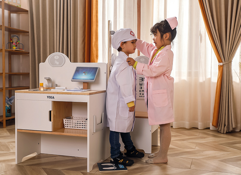 Met dit uitgebreide medische centrum kunnen heel wat kinderen tegelijk in de dokterspraktijk spelen.