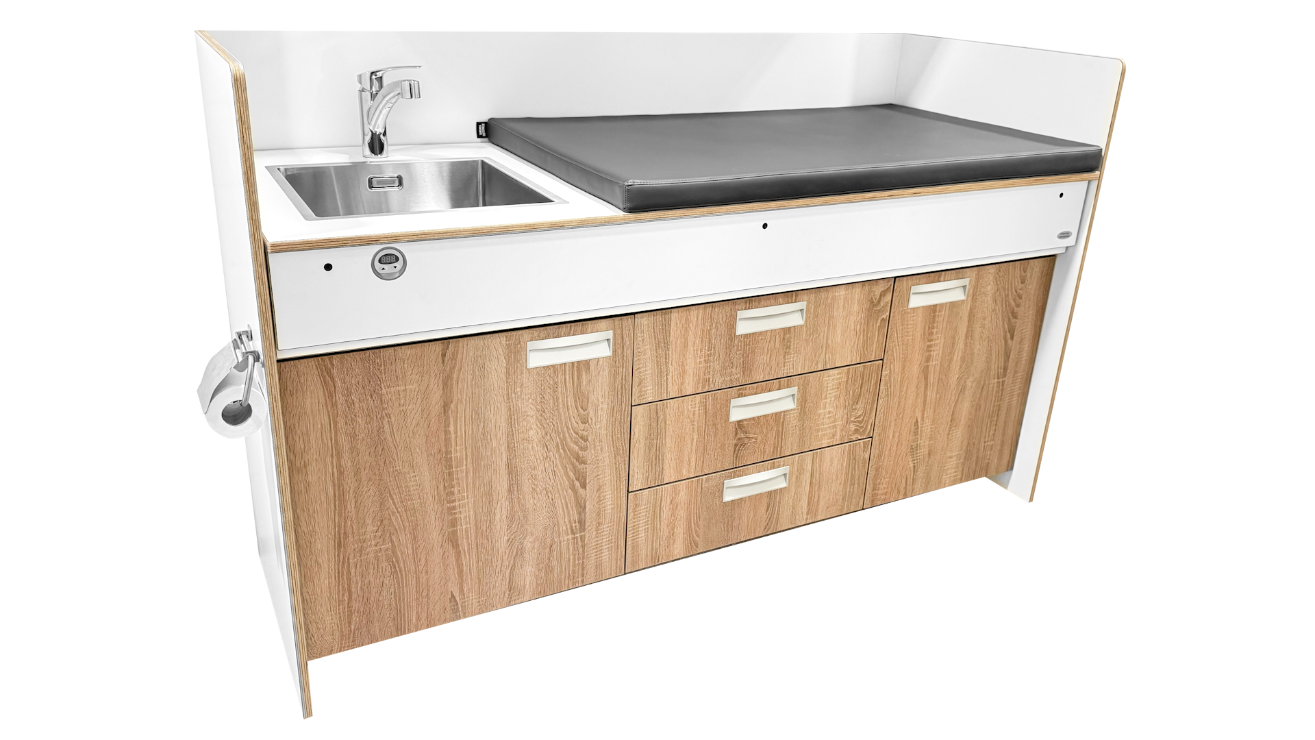 In de commode is een uittrekbare trap ingebouwd voorzien van een kinder blokkering,