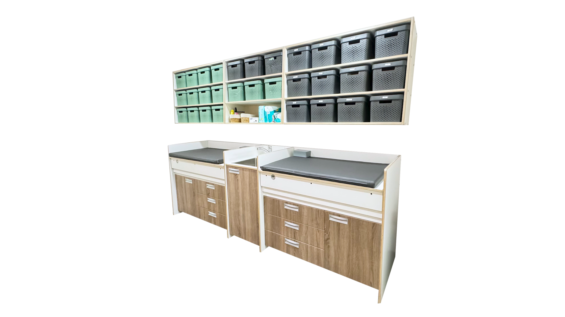 Pantry, Commode 150 met 3 laagts mandjeskast Tangara groothandel kinderopvang en kinderdagverblijfinrichting4