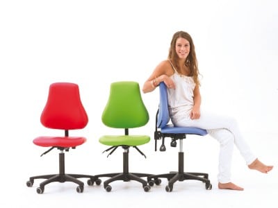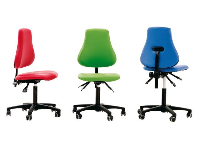 Deze leidsterstoel is leverbaar in de kleuren rood, blauw, zwart en lime groen.