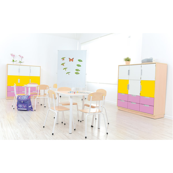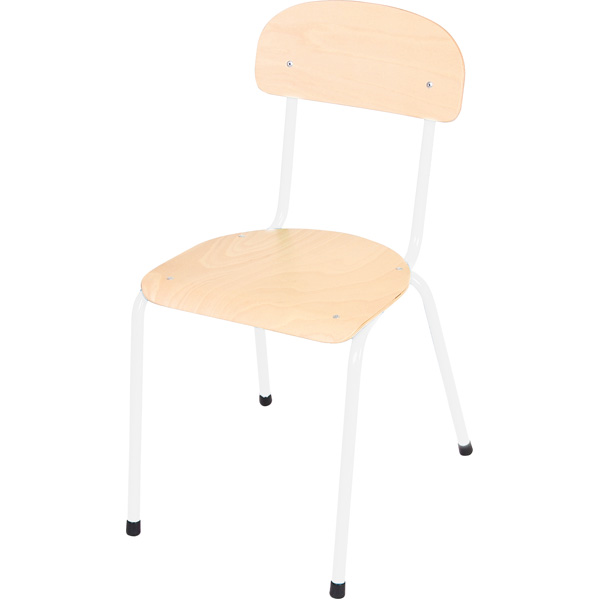 Stoel maat 5 = Zithoogte 43cm met zitting en rugleuning van gelakt beuken multiplex 6 mm.