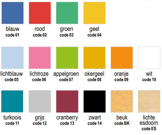 Bekijk bijgaande kleurenoverzicht en selecteer een tafelblad kleur in het keuzemenu.