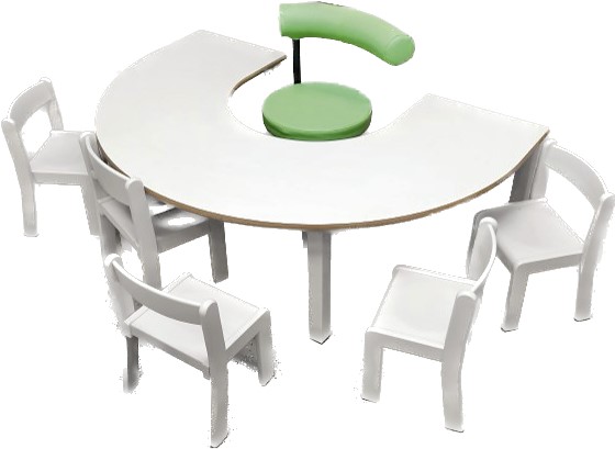 Compacte instructietafel met krasbestendig HPL toplaag in houtdecor of kleur naar keuze.