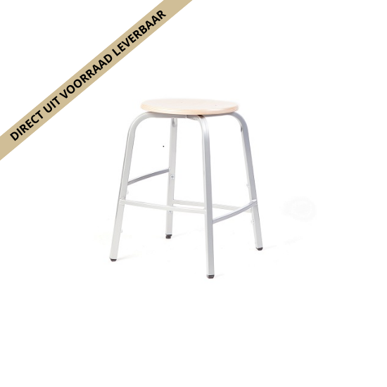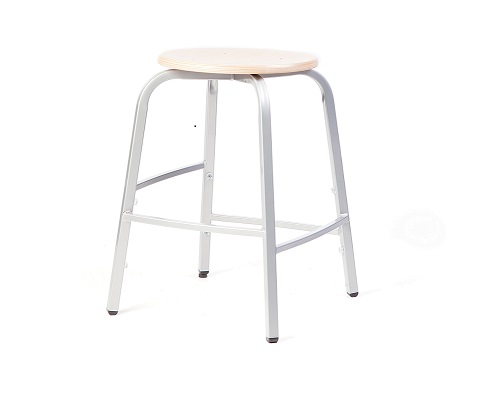 Metalen 4-pootskrukje met verspringende voetsteunen.