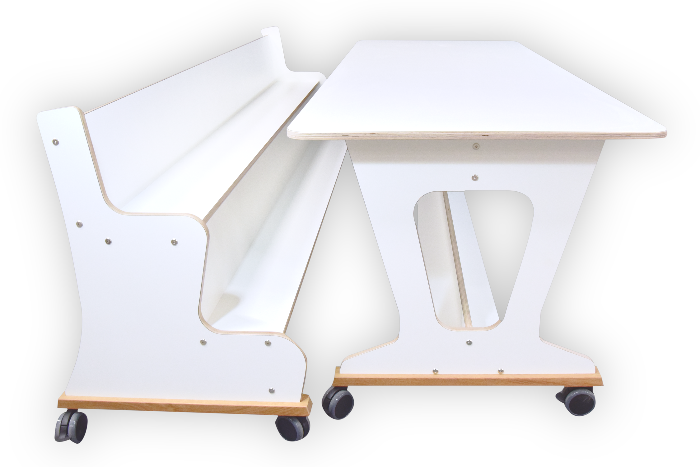 Tafel is opgebouwd uit 18mm berken multiplex met standaard wit hpl toplaag,