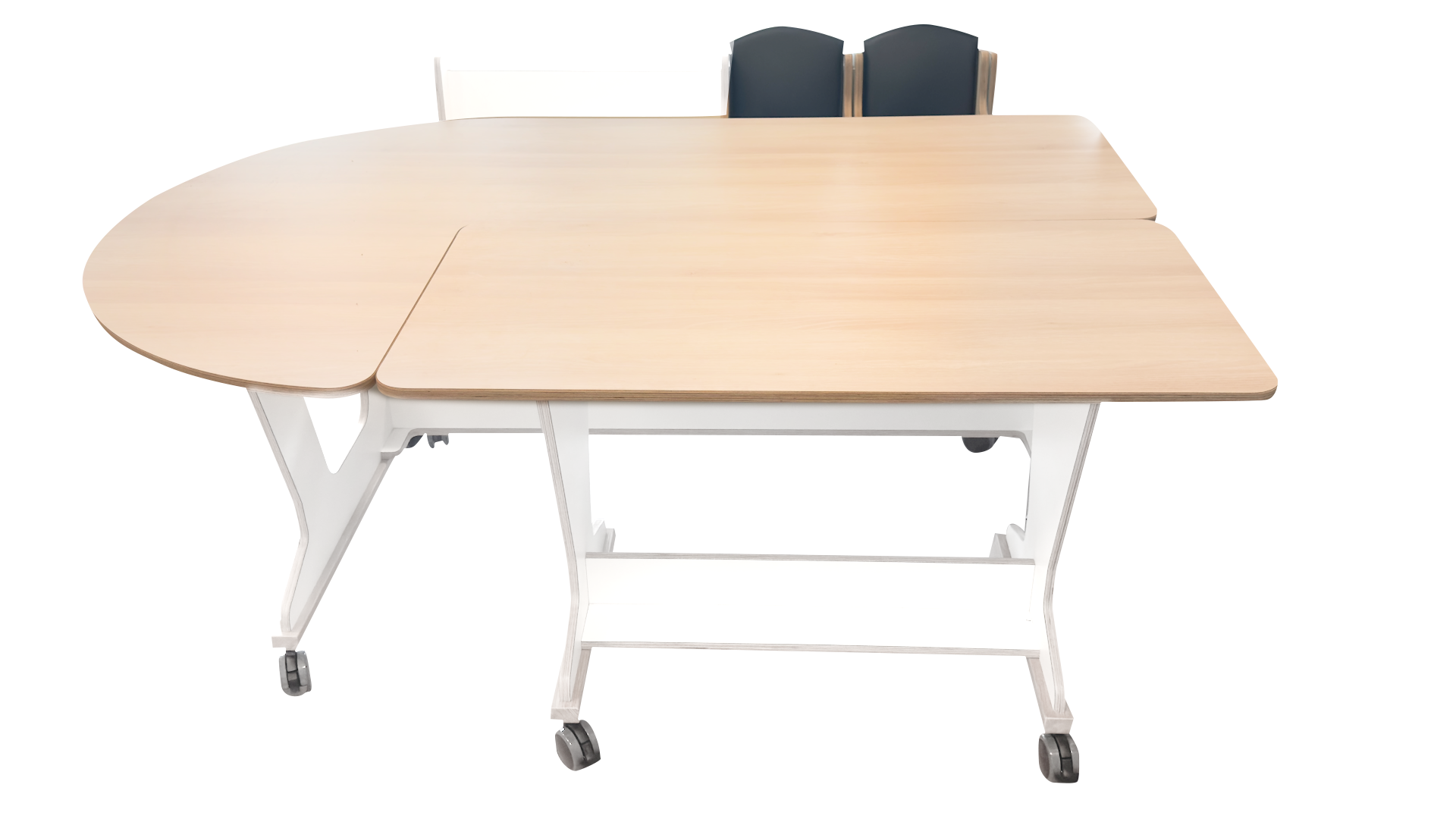 De tafels zijn opgebouwd uit 18mm berken multiplex met witte hpl toplaag,