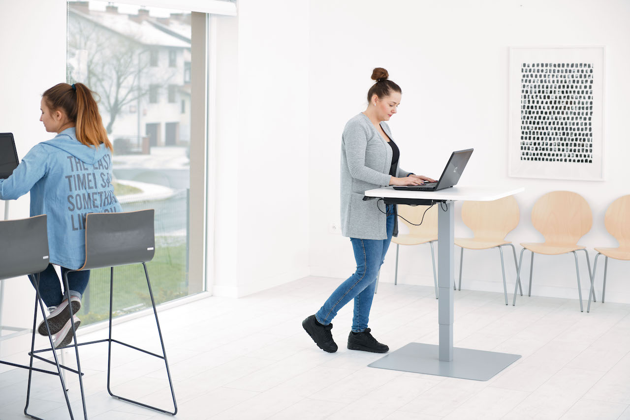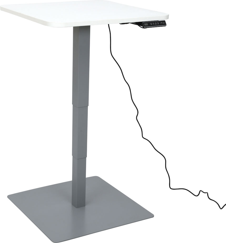 Vierkante stabiele tafel met vierkante poten met soepele elektrische hoogteverstelling.