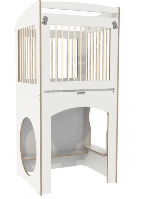 Stevige hoge box uitgevoerd met kantelhek en spijlen.