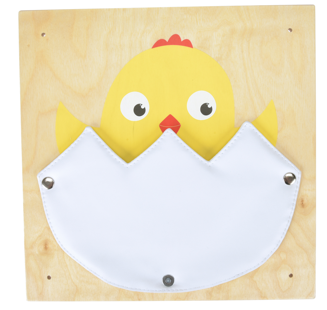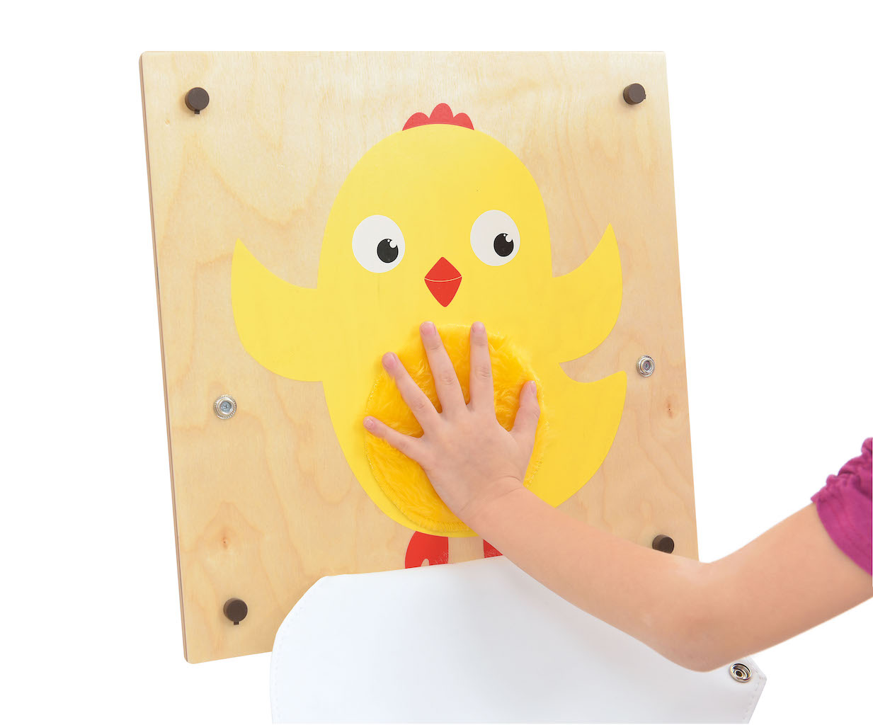 Decoratieve elementen van multiplex met verschillende motieven die kinderen zullen stimuleren om te spelen, observeren en ervaren door aanraking.