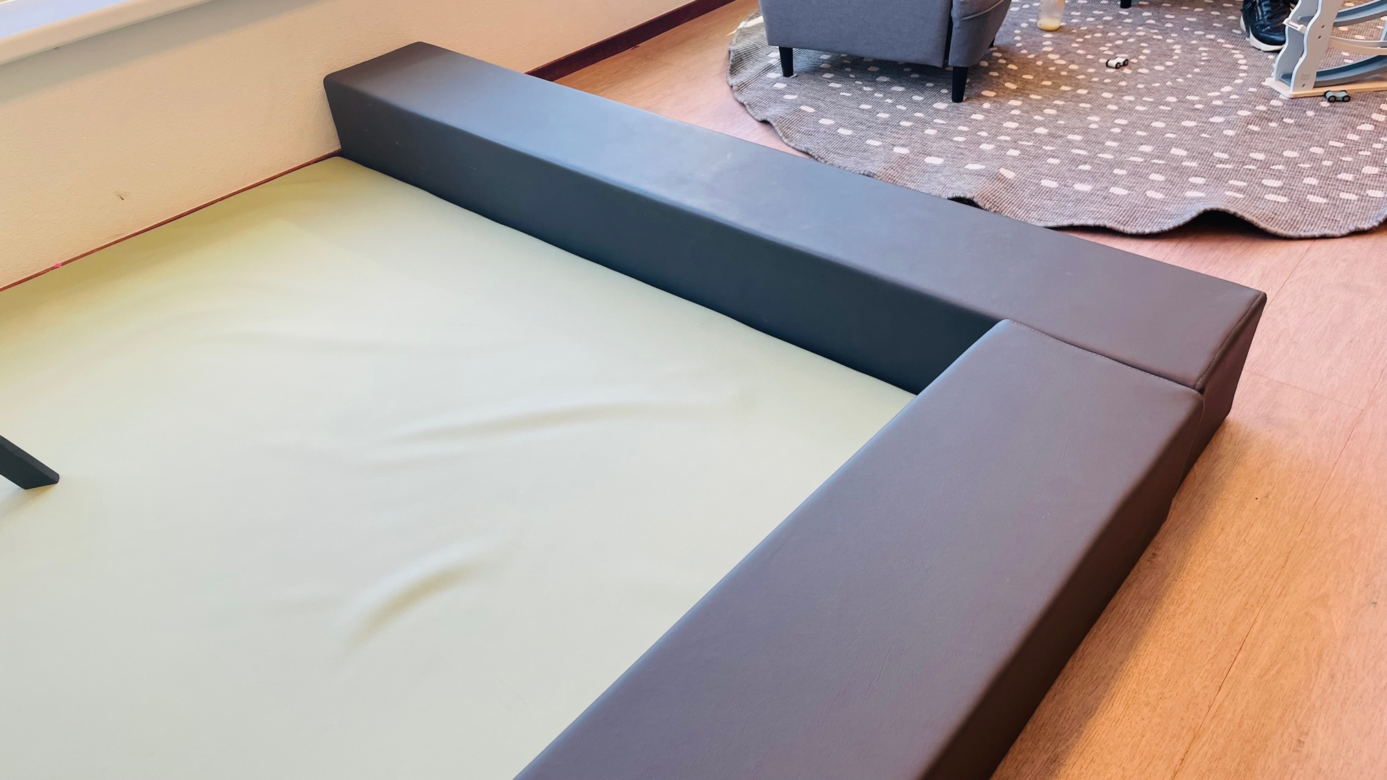Het vloerkussen en de randen worden bij elkaar gehouden door een goed hechtende klittenband.