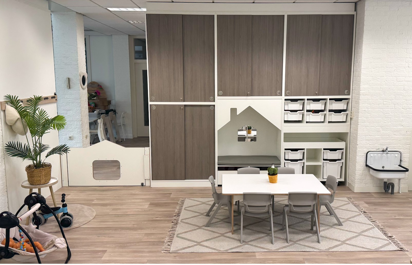 Hierdoor is een grotere deuropening mogelijk waar kinderwagens doorheen passen.