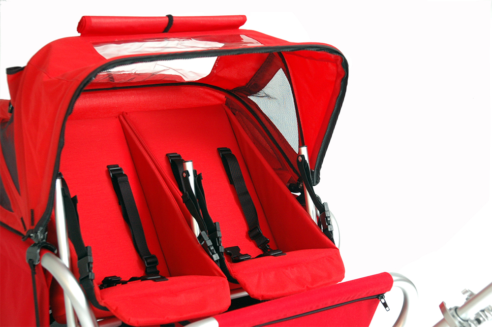 Over de babyzitjes is een bescherm kap te plaatsen welke de baby's beschermen tegen zon, wind en regen.