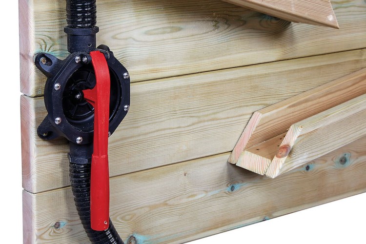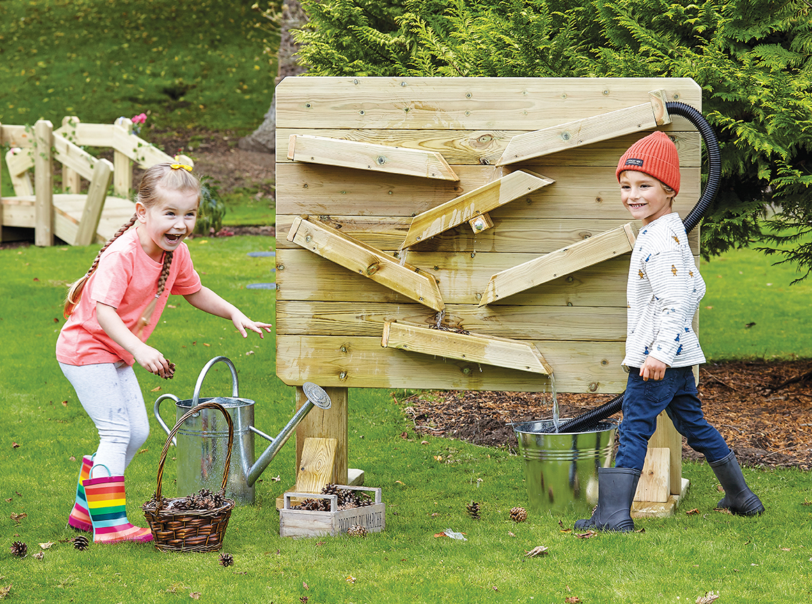 Het vrijstaande, stevige ontwerp heeft een waterpomp, trog en 6 x houten waterglijbanen.