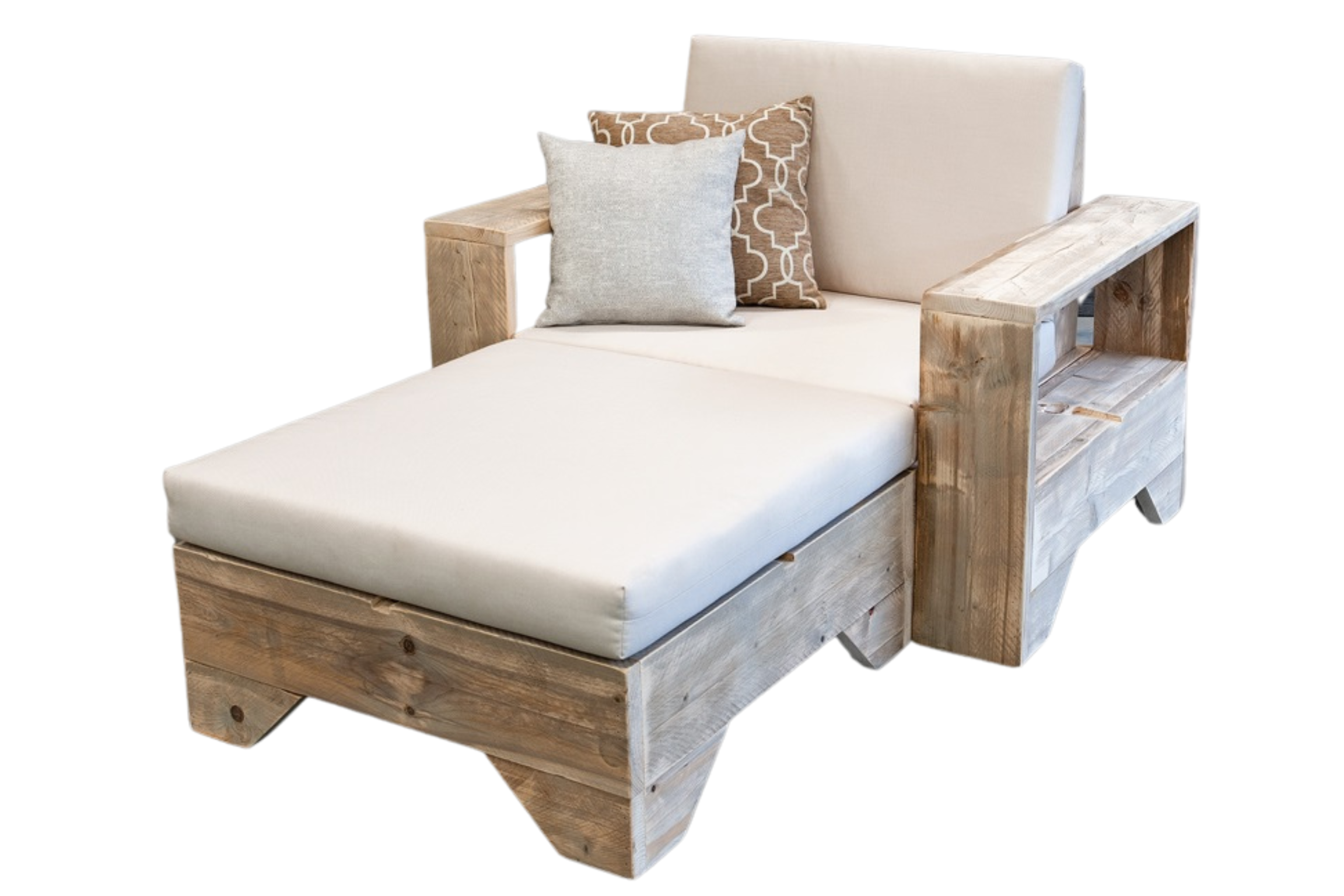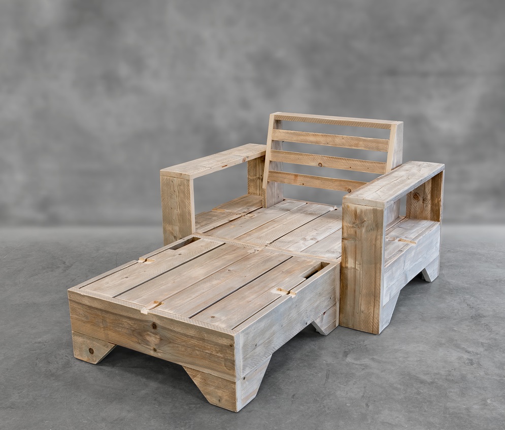 met ons eigen unieke concept de Steigerhouten Loungebank Zen 1 incl. Hocker,