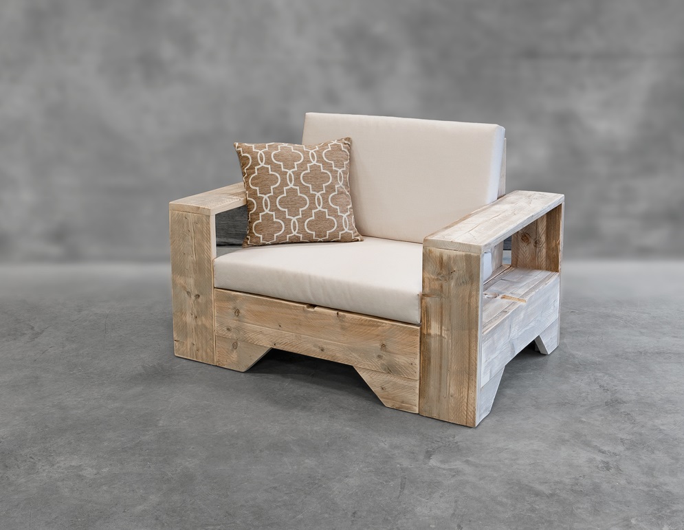 met ons eigen unieke concept de Steigerhouten Loungebank Zen 1 incl. Hocker,