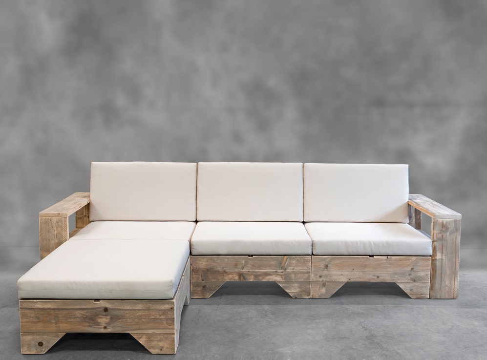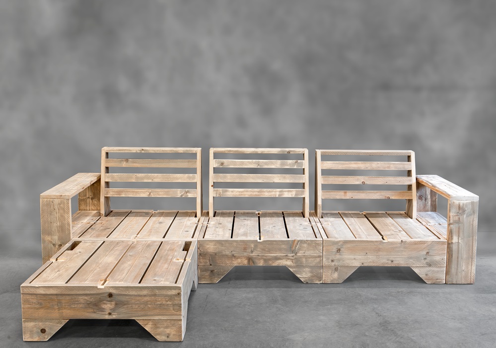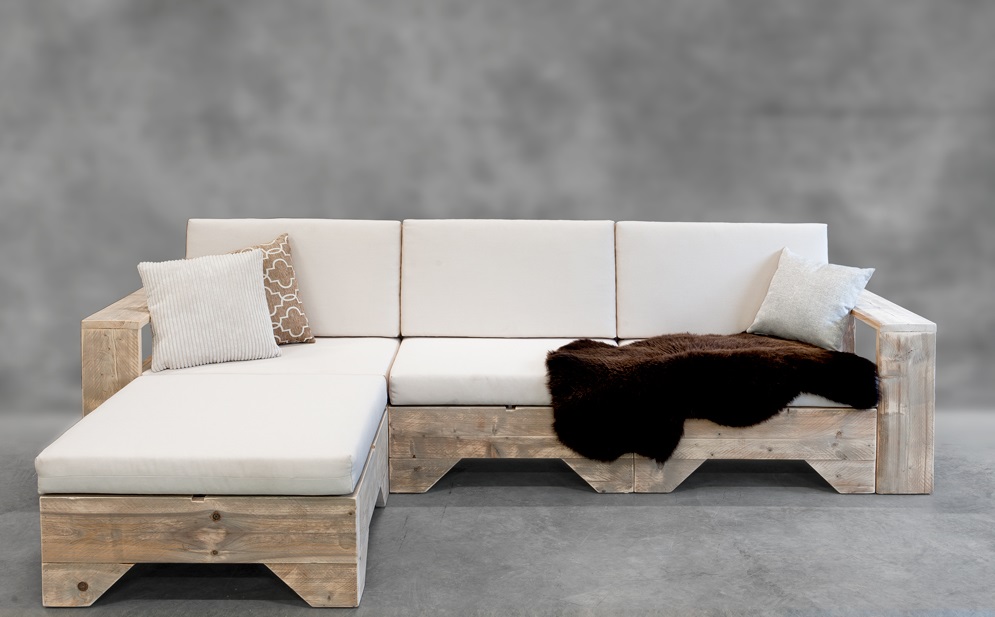 met ons eigen unieke concept de Steigerhouten Loungebank Zen 1 incl. Hocker,