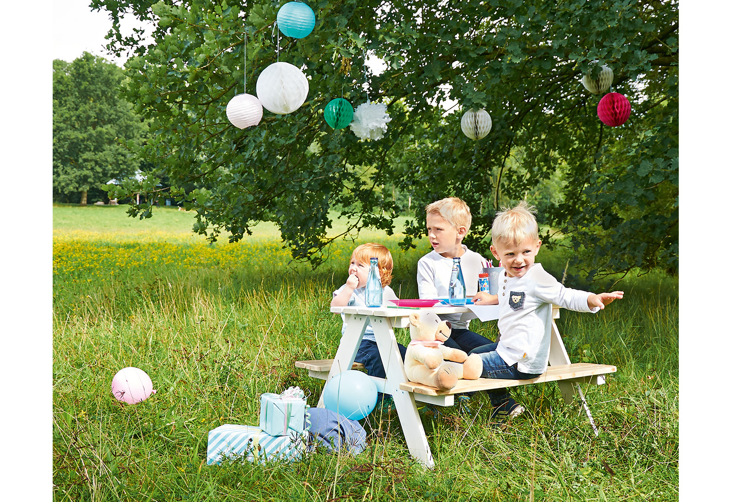 | 4Kids Picknicktafel Wit Mooie wit gebeitste houten picknicktafel, zittingen van blank onbehandeld vurenhout. Deze picknicktafel 4Kids bied ruimte aan vier kinderen en heeft als afmetingen: 90x85x50cm. Ongemonteerd geleverd. |