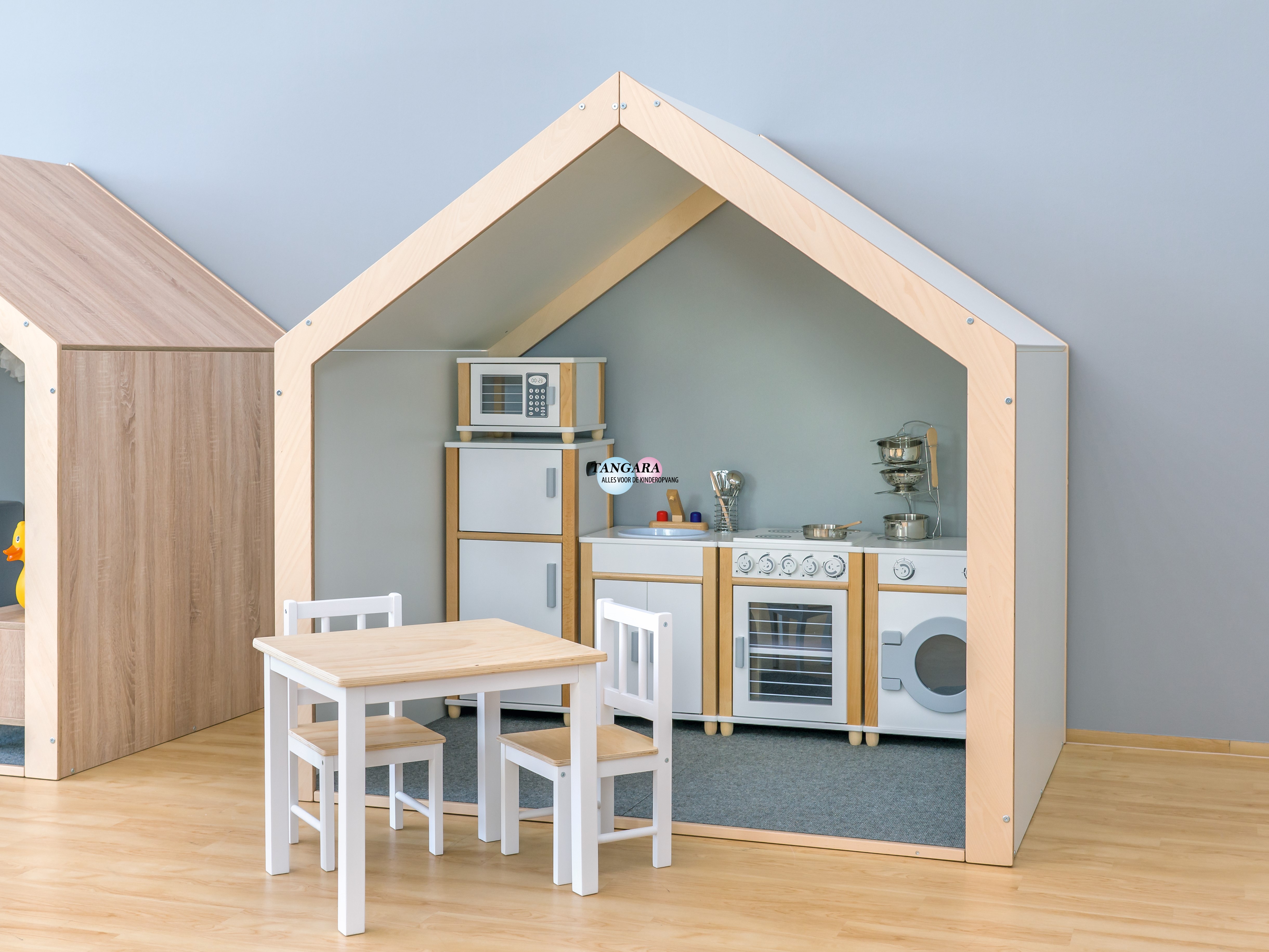 EduCasa speelhuis XXL geeft een gevoel van thuis. Zet willekeurig een ruimte op, een bouwhoek, een poppenhuis, een muziekkamer of een schilderhuis, Het speelhuisje is verkrijgbaar in verschillende kleuren. Zelfmontage. |