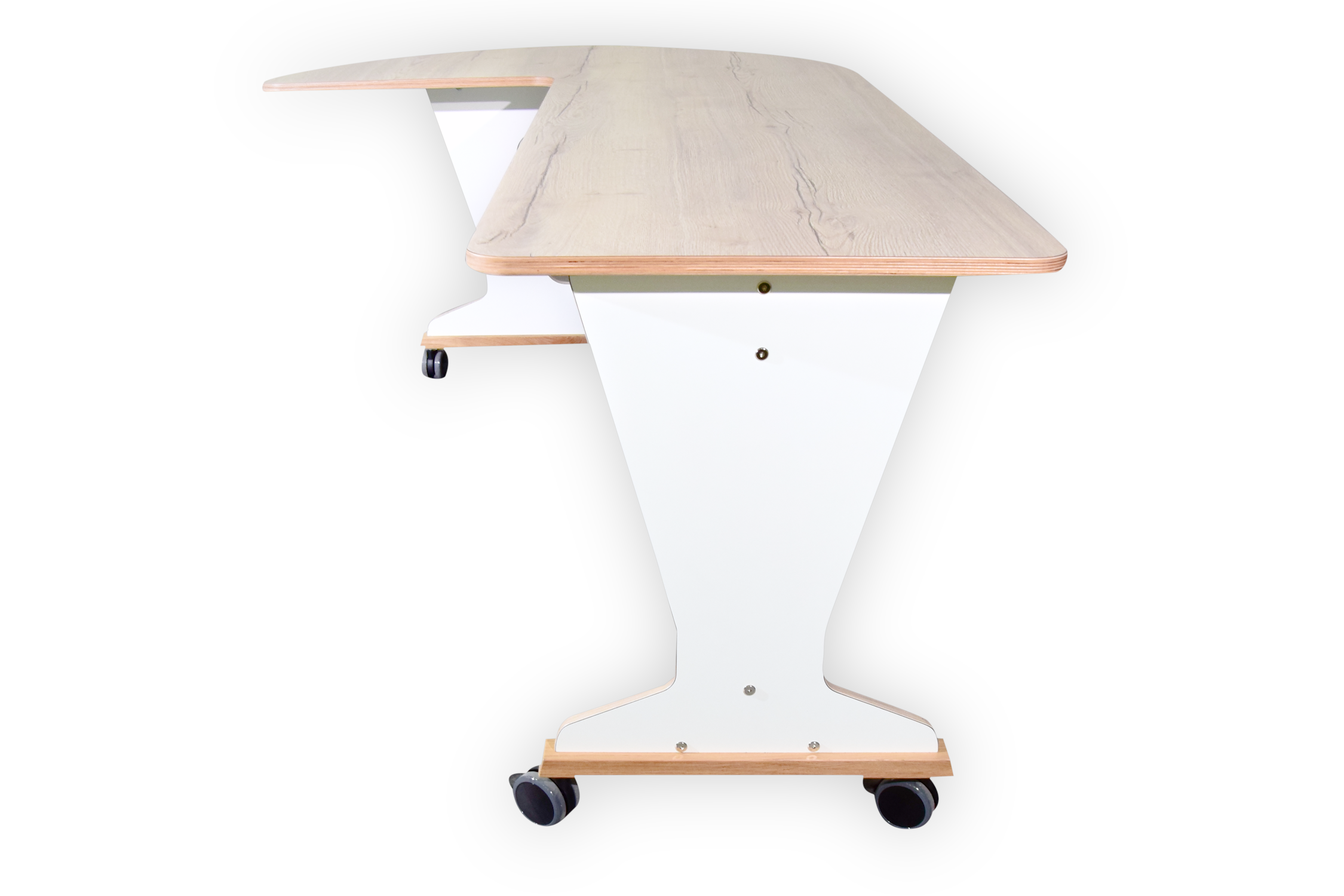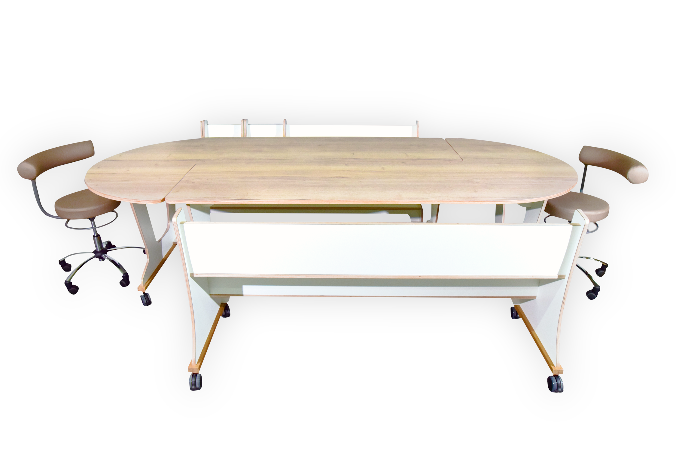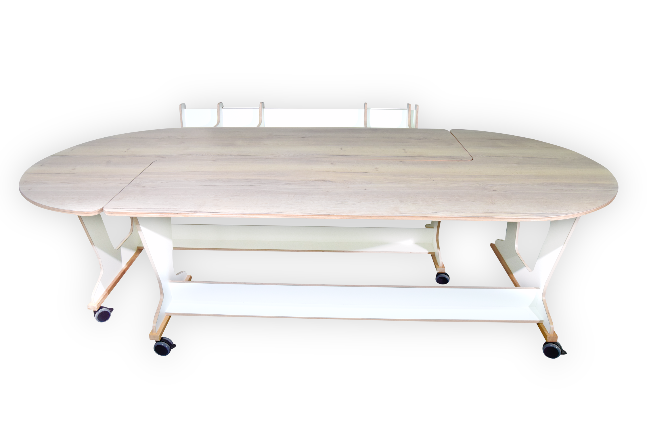 De tafel is uitvoerbaar in de kleur wit, volledig houtdecor en wit met het blad in een houtdecor naar keuze.