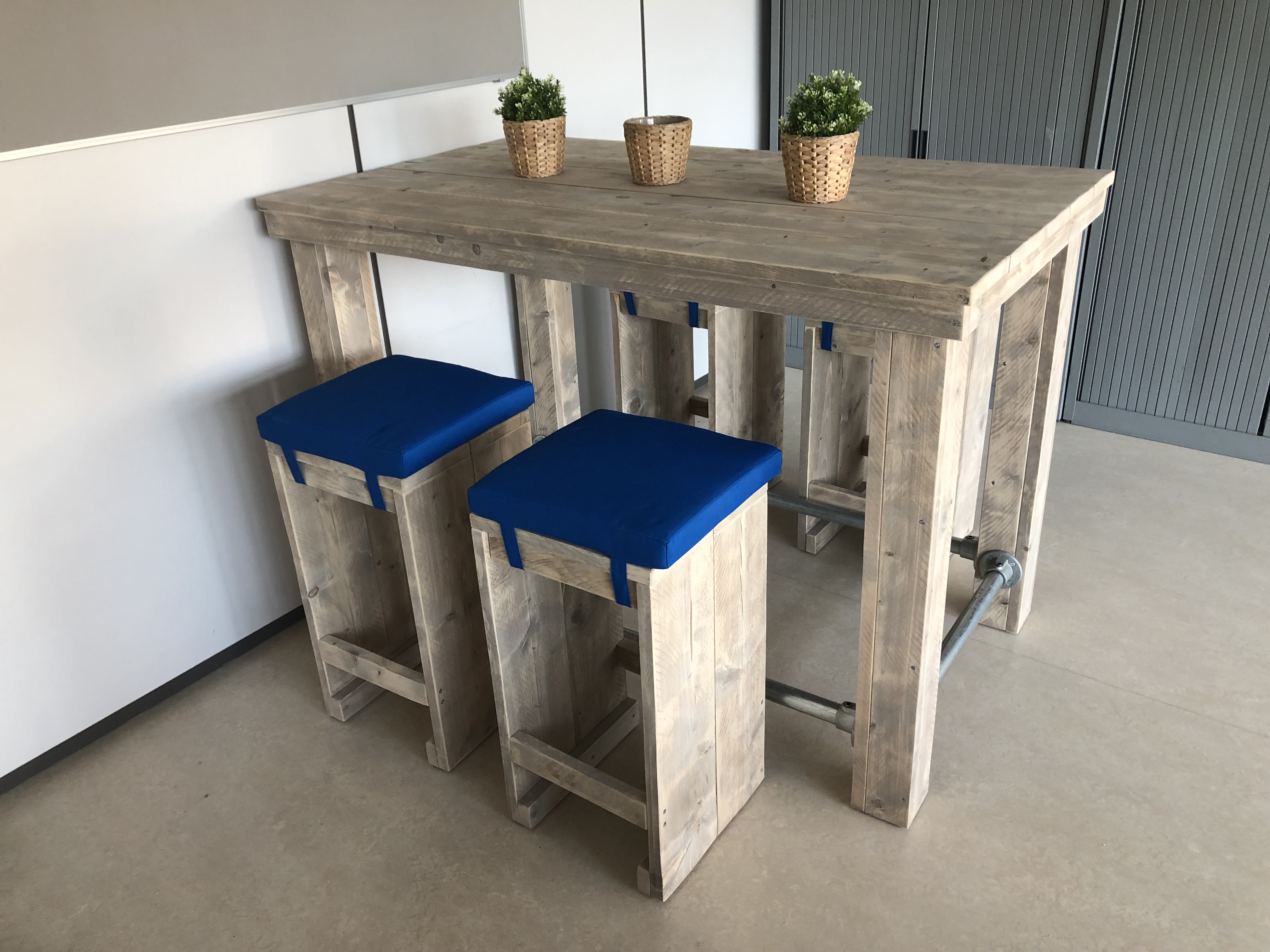 | Steigerhouten Barset Enjoy bestaat uit: 1 st. Steigerhouten Bartafel Enjoy, L 160 x D 95 x H 110 cm (met optioneel accessoires) 4 st. Steigerhouten Barkruk Enjoy L 40 x D 40 x H 75 cm (met optioneel zitkussen) Kenmerken: Gemaakt van Old-Look steigerhout. Geschuurde planken, geen splinters of ruwe oppervlakken en stofvrij Optioneel: kruk met rugleuning Kussens in bijna 70 verschillende kleuren optioneel verkrijgbaar bij Kruk-kussens Inbouwaccessoires optioneel verkrijgbaar Keuze in kleurafwerking van het steigerhout Impregneer behandeling optioneel verkrijgbaar bij Impregneer behandeling. Exclusief getoonde brander Krukkussens Onze Krukkussens worden standaard voorzien van linten, waarom doen wij dat? Meestal als iemand op een kruk gaat zitten dan schuift het kussen van de kruk af, wij vinden dat niet fijn, vandaar dat wij deze linten ook nog voorzien van een klittenband, zo kan deze zeer handig vast gemaakt worden aan de zitting van de kruk en kunt u makkelijker gaan zitten zonder dat de kussen van de kruk afglijd. En daarbij nog een klein ander voordeel, zo kan het kussen ook niet wegwaaien! Ook leuk om te doen: U kunt bijvoorbeeld ook 4 verschillende soorten kleuren krukkussens nemen voor een leuk speels effect. Hoe dan? Geef na de bestelling van de krukkussens de kleuren door in het winkelmandje bij notities, wij zorgen er dan voor dat deze bij u geleverd worden. Omdat u de keuze heeft in verschillende kleuren of kleur opstellingen van de krukkussens zullen deze voor u op maat gemaakt worden en na ca. 2 weken geleverd worden. Houdt er rekening mee dat het in het hoogseizoen drukker is dan normaal en dat dit de levertijd kan beïnvloeden. Impregneer behandeling uw kunt uw tafel laten voorzien van een impregneer behandeling, met deze transparante impregneer-spray voorkomt u namelijk de kans op vervelende vlekken die in het hout kunnen trekken en u zo langer plezier heeft van uw barset. Voordat u besteld, let op het volgende: Oorspronkelijk zijn steigerplanken bedoeld voor een bouwsteiger om erover heen te lopen. Als basismateriaal voor meubelen is steigerhout erg populair. Omdat dit bij steigerplanken niet het geval is zitten hier soms wat nadelen aan: Vooral in de winter als er gestookt gaat worden kan het hout nog iets gaan krimpen, Het plaatsen in een vochtige omgeving of het (zelf) verven van dit hout kan dit proces verergeren. Verder is steigerhout een vuren houtsoort en daardoor zacht, Het grootste nadeel van steigerhout is de 10% groei en krimptolerantie. Bij het bestellen van steigerhouten meubels gaat u ermee akkoord dat u op de hoogte bent van deze nadelen. |
