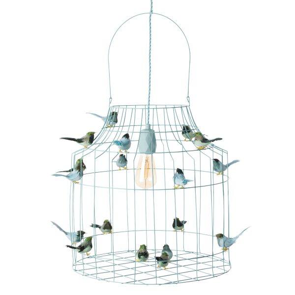 Dutch Dilight Hanglamp van lichtblauw ijzerdraad met vogeltjes. Net echt!