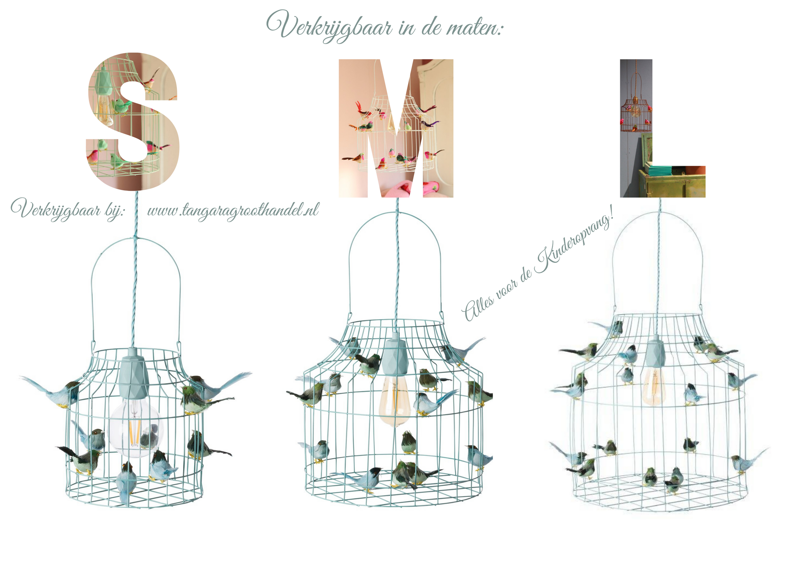 Inclusief lichtblauwe snoer, wit plafondkapje, lichtblauwe fitting, 9 lichtblauwe met groentint vogeltjes