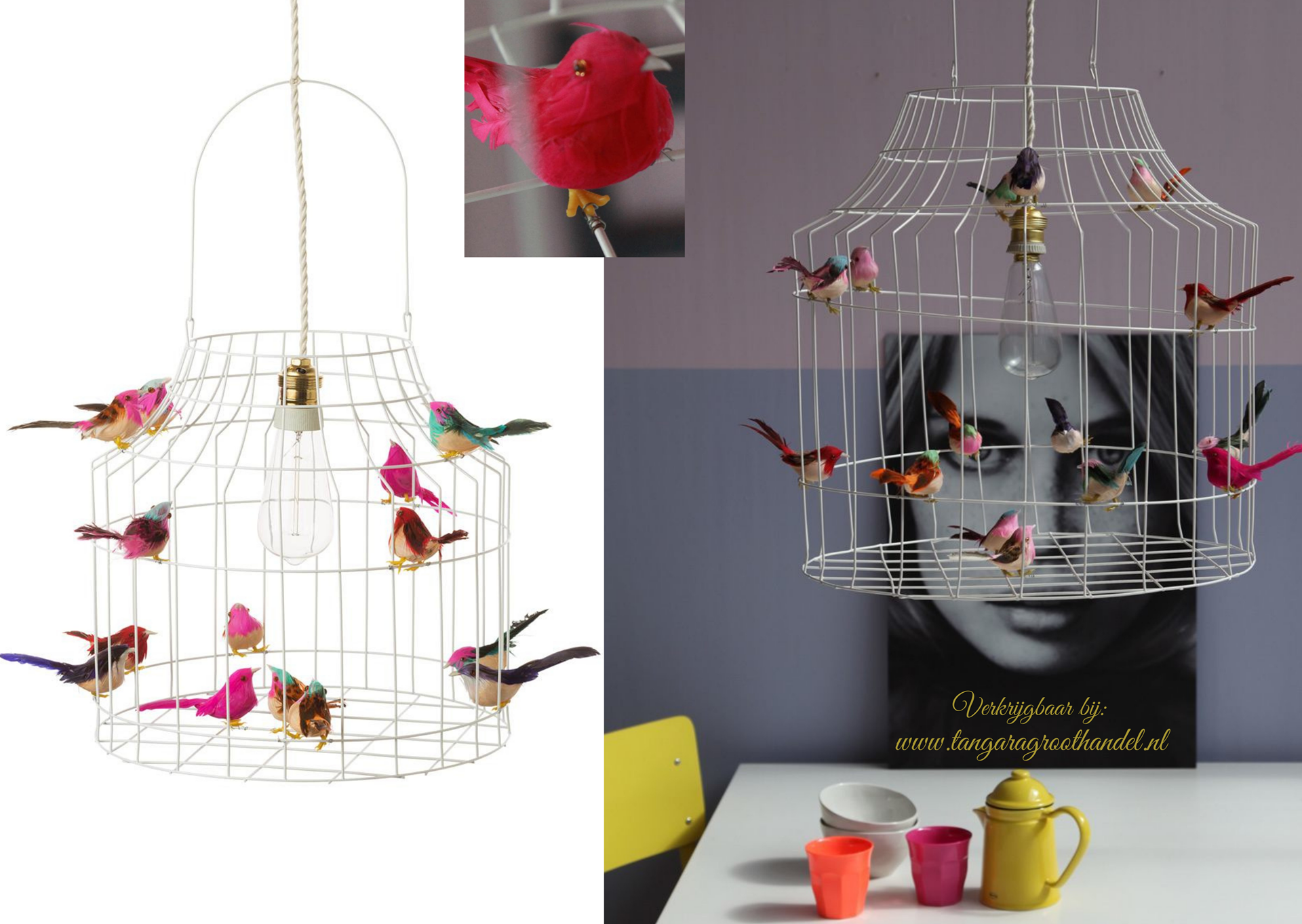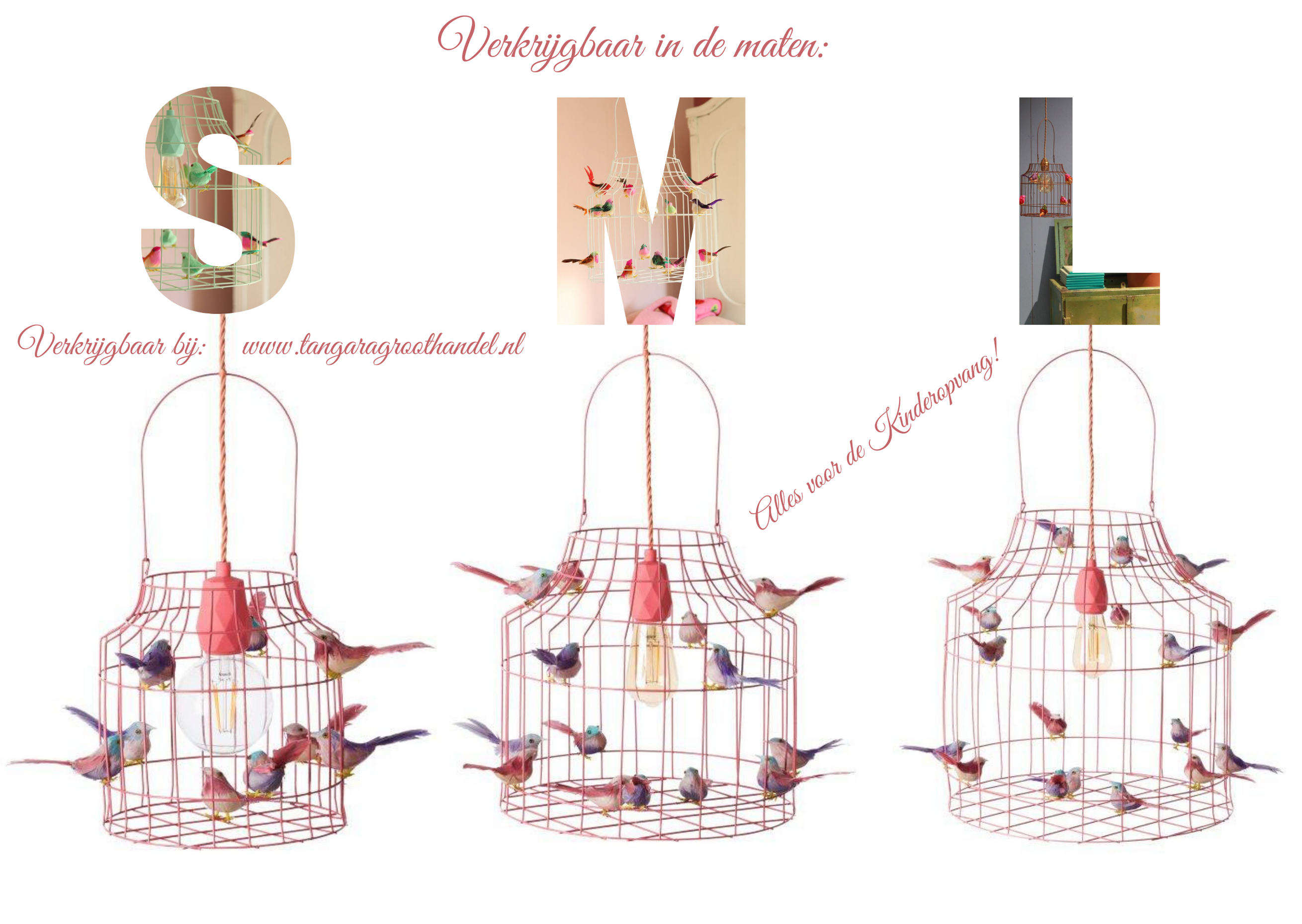 Dutch Dilight Hanglamp van pastelroze ijzerdraad met vogeltjes. Net echt!