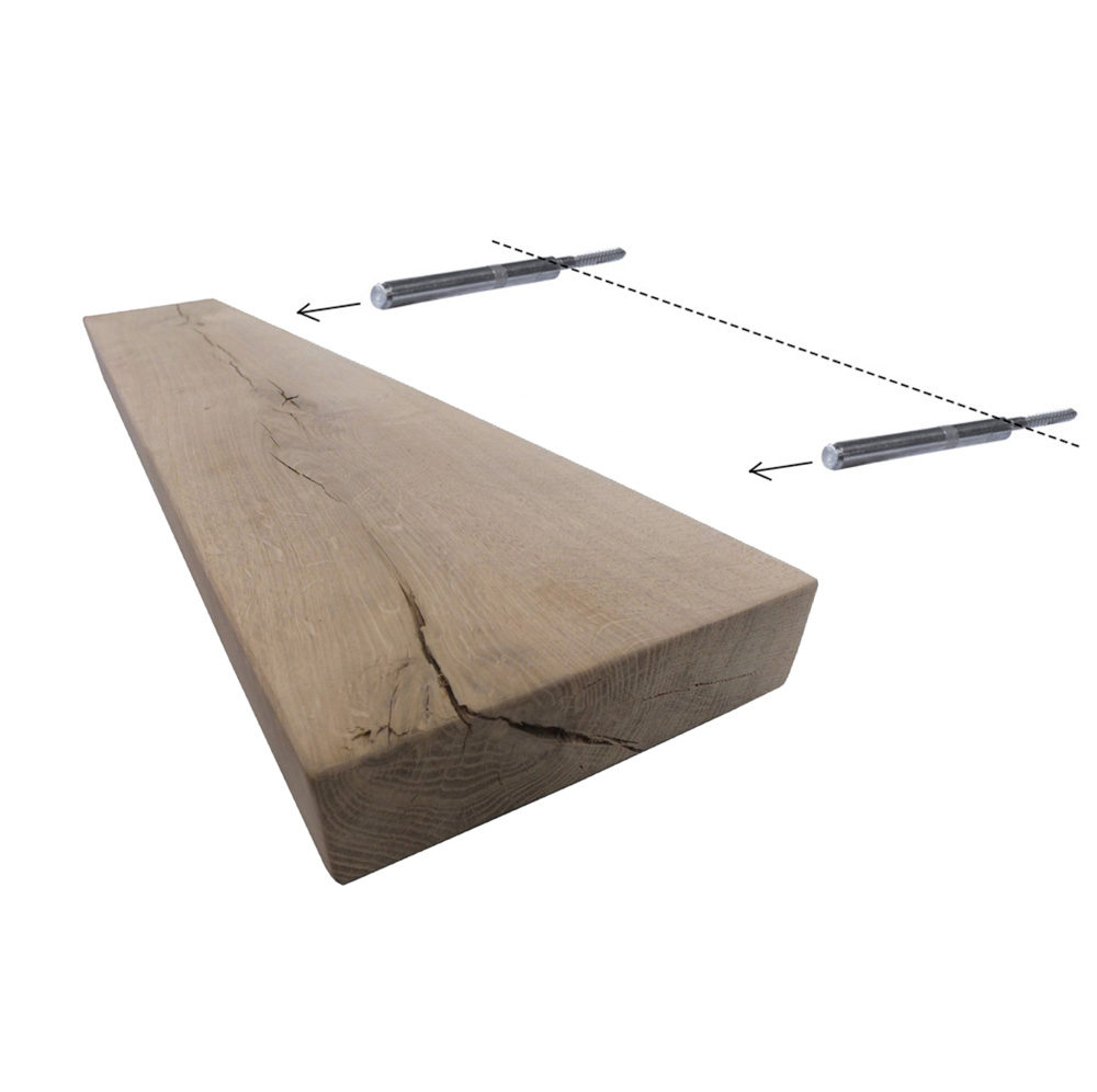 Deze Blinde Plankdrager met Eiken Rustiek zijn gemaakt om zwevend aan de muur te bevestigen. Alle blinde plankdragers zijn gemakkelijk te bevestigen aan de muur en omdat wij de houten planken reeds al hebben voorzien van 2 voorgeboorde gaten is een bevestiging zwevend aan uw eigen muur zo gebeurd!