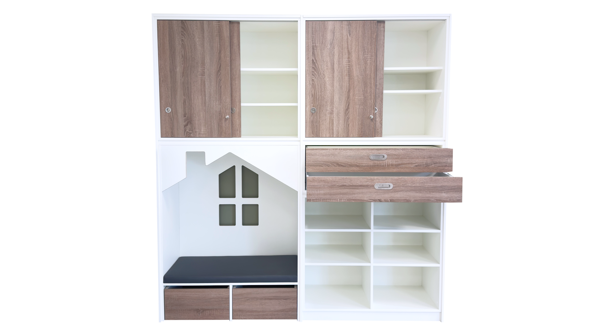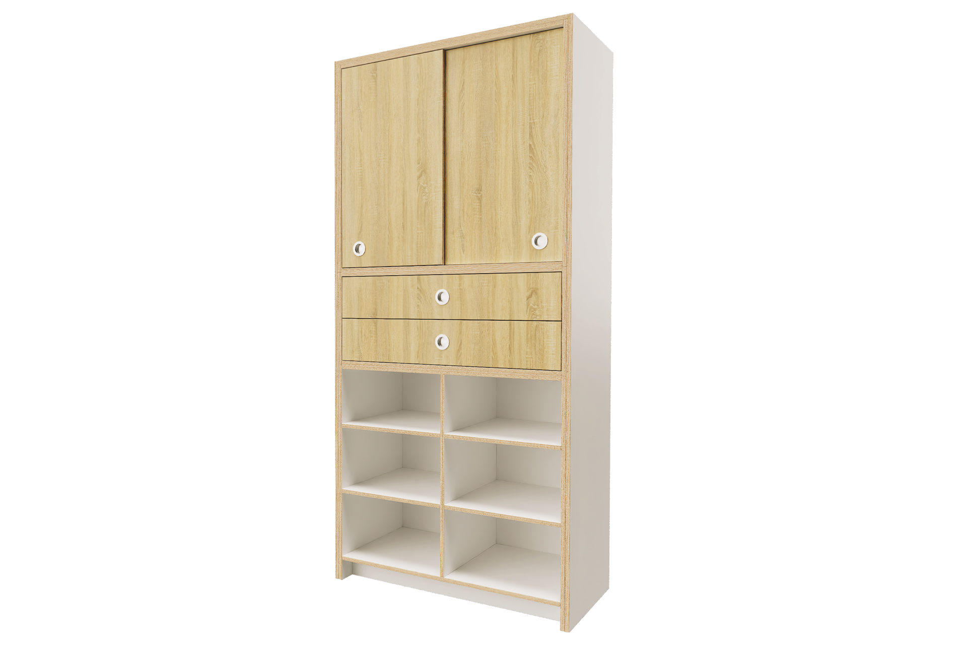 De laden en schuifdeuren zijn leverbaar in een decor naar keuze.