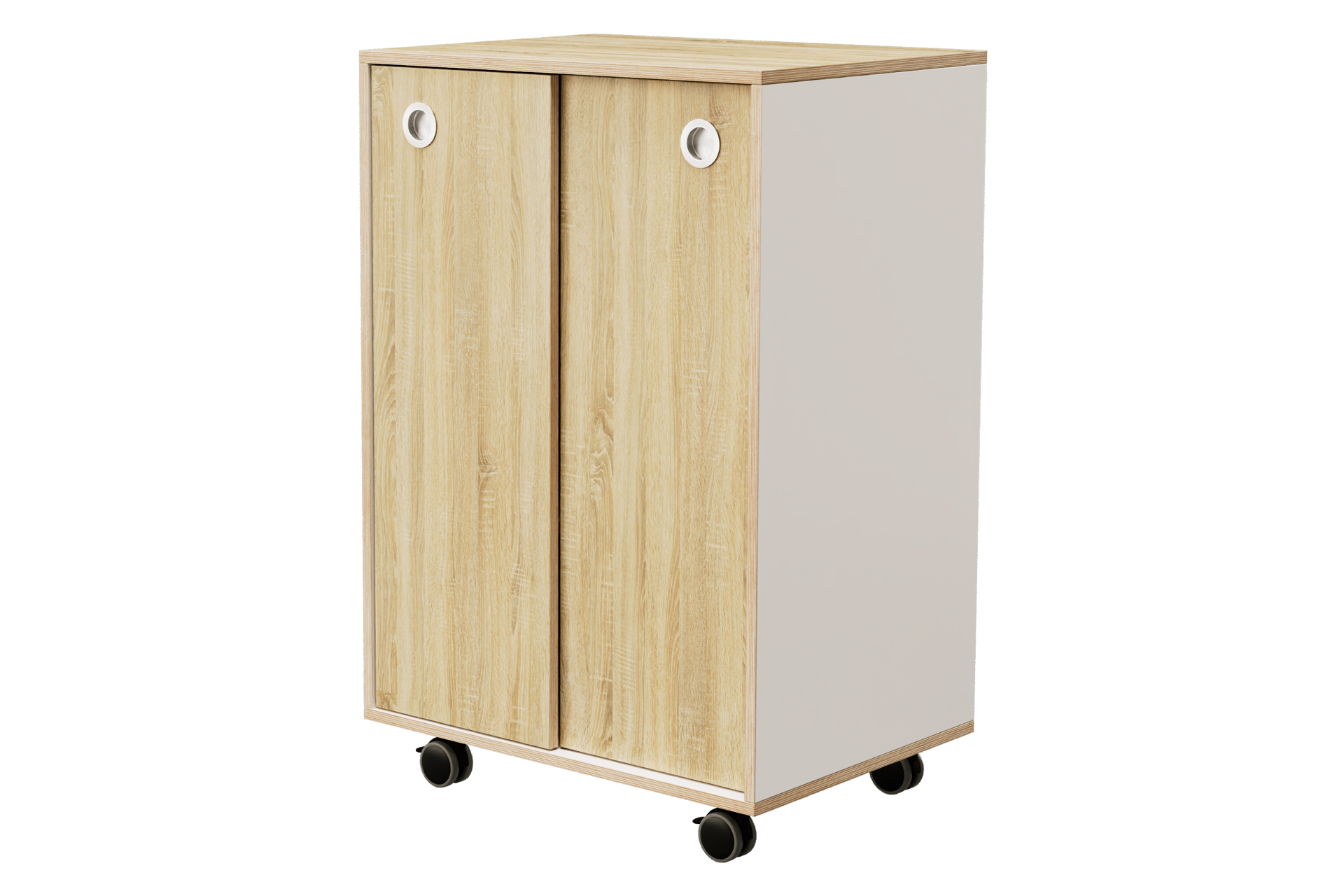 Het bovenblad en de draaideuren zijn leverbaar in een houtdecor naar keuze.