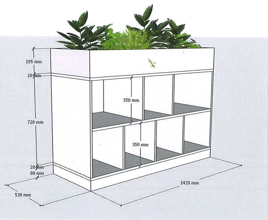 Standaard geleverd op een plint maar tegen meerprijs ook uitvoerbaar met wielen.