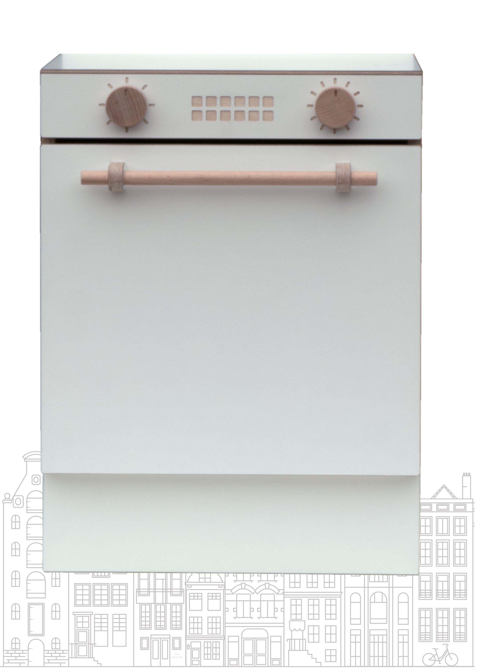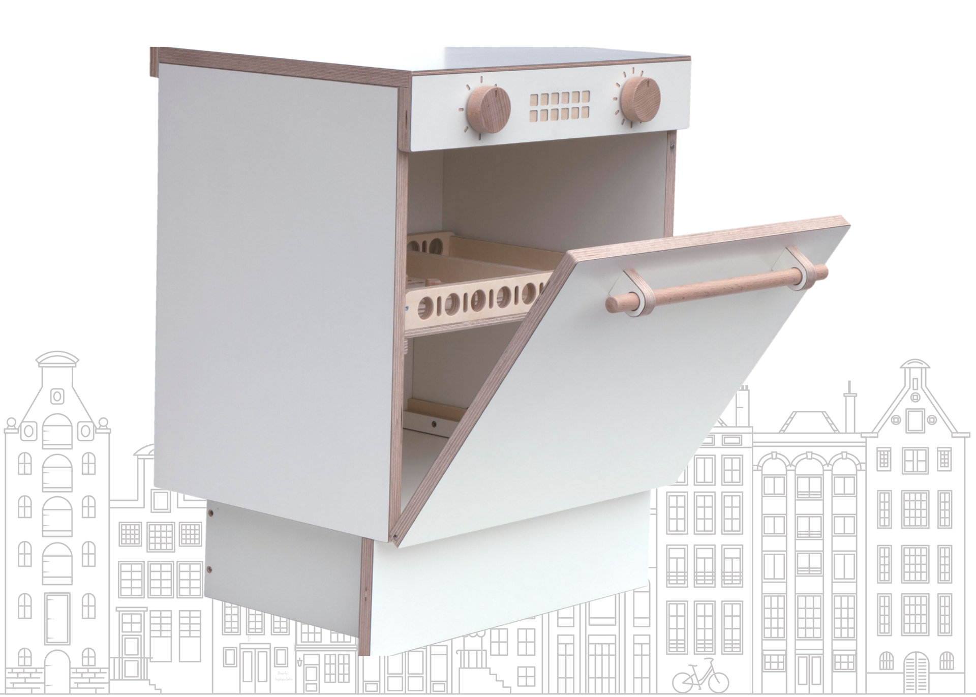 De beuken houten vaatwasrekjes en oven roosters zijn uitneembaar.