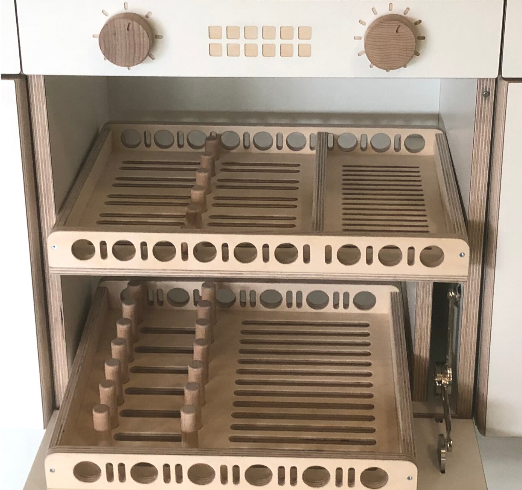 De beuken houten vaatwasrekjes en oven roosters zijn uitneembaar.