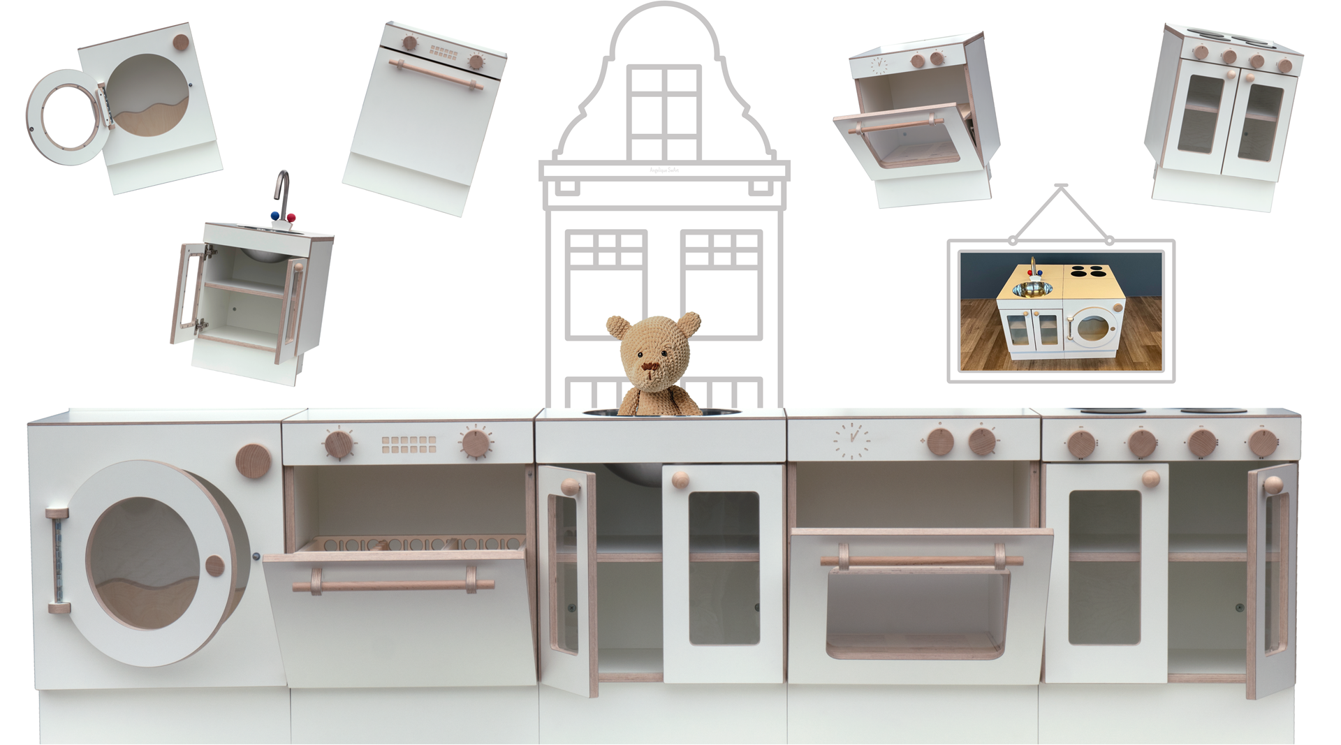 10 dicht Wasmachine met kindjes & Fornuis met kindjeOer Hollandse speelkeukentjes Tangara kinderopvang inrichting