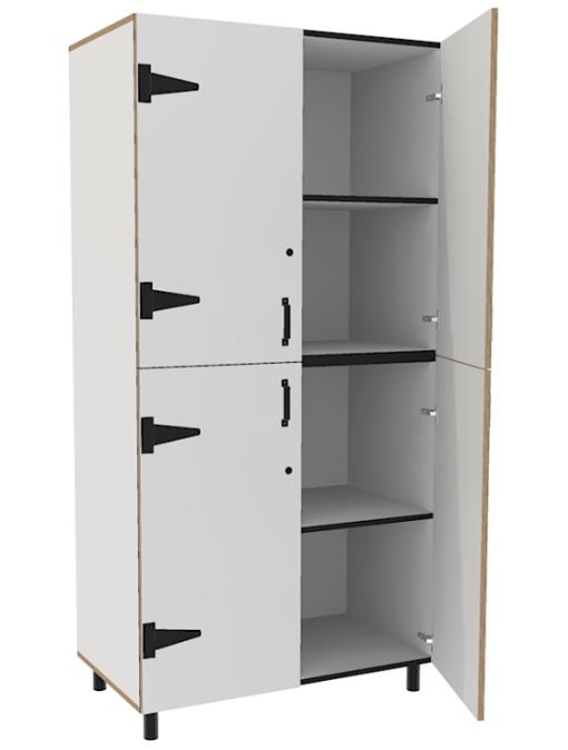 Leidsterkast met boven en onder deuren, voorzien van sloten.