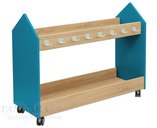 De bestelwagen in een eenvoudig huisontwerp is uitgerust met 16 dubbele haken en 2 opbergvakken, zodat alles netjes opgeborgen kan worden. De rollen zijn vergrendelbaar, waardoor een stevige basis wordt gegarandeerd. De auto is gedecoreerd met een moderne eikenhouten inrichting.