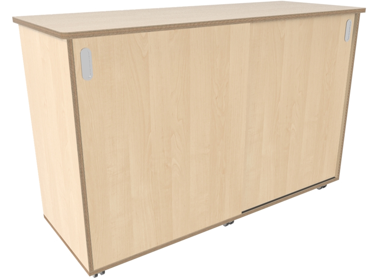 Lage verrijdbare kast met 2 schuifdeuren voorzien van een slot.