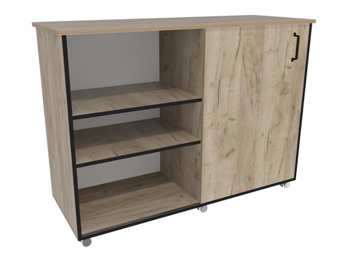 Lage verrijdbare kast met 1 schuifdeur voorzien van een slot.